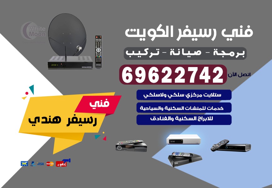 يمكنك الآن الحصول على الرسيفر الذي تريدة من خلال كافة فروعنا في الكويت ونرسل معك فني التركيب الذي لايستغرق عمله سوى وقت قليل، خدماتنا متاحة طوال ايام الاسبوع وباسعار ليس لها مثيل فقط اتصل على خدمة فني رسيفر هندي جابر العلي 69622742 .
