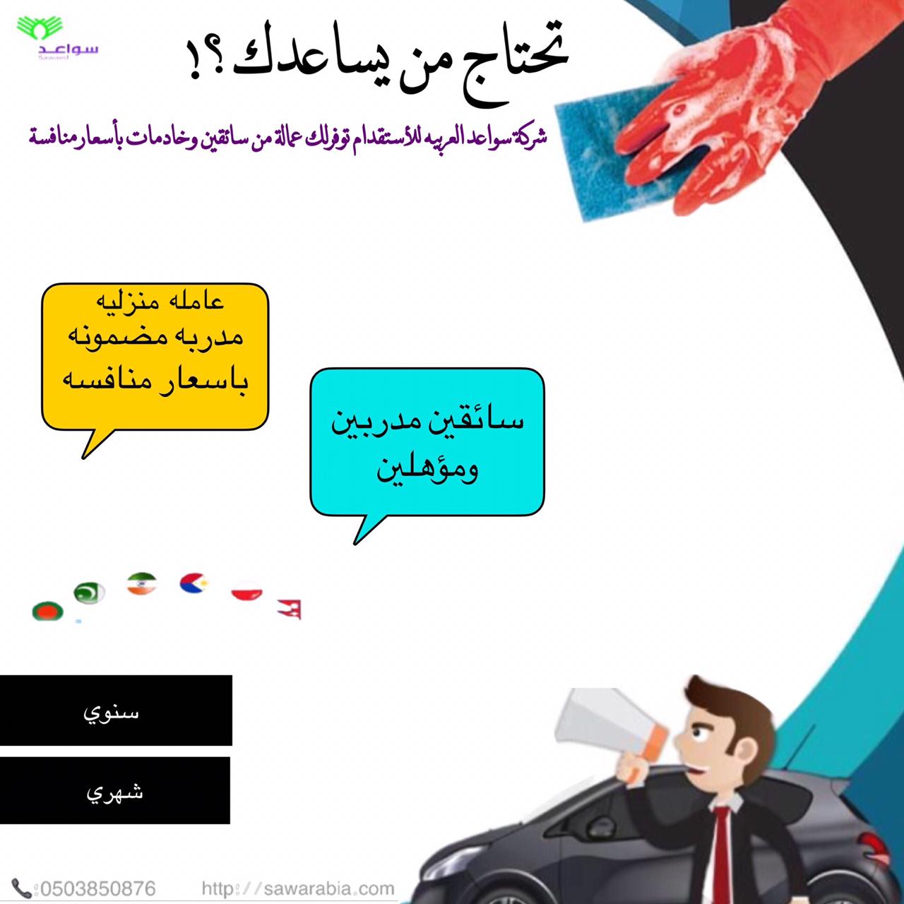 عمالة منزلية 12 أكتوبر، 2019 بقلم feras1 mostafa شركة سواعد العربية عمالة منزلية مدربه ومضمونه خادمات وسائقين احجز خادمتك من هنا للمساعدة في التسجيل 0503850876